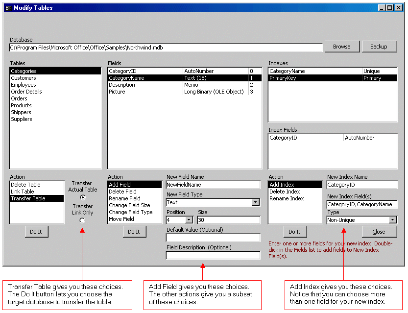 Wizard to Manage Remote Backend MS Access Database Tables, Fields, and Indexes |