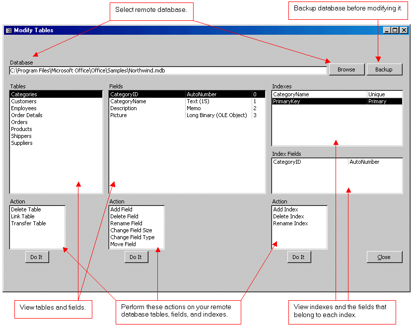 Wizard to Manage Remote Backend MS Access Database Tables, Fields, and Indexes |